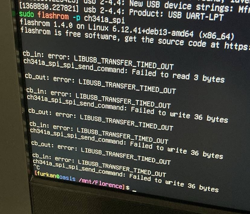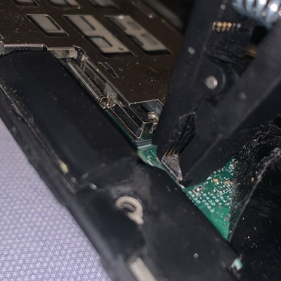 When the programmer arrived, I quickly disassembled the thinkpad and tried to attach the SOIC clip, and the keyword here is try. No matter what I did I simply couldn't get it to fit properly on the chip, and flashrom just didn't recognize it. To make sure that my computer wasn't the problem, I first tried to flash from my Debian 12 server, which didn't work. As a last resort, I took out the work PC running Windows 10 LTSC from my server cabinet, which I just used for SQL Server, then tried flashing it from there. Nope. Whatever flasher I tried didn't recognize it, I couldn't manage to fit the clip on the BIOS chip properly. I know im not the best when it comes to fine craftsmanship, but man am I that terrible? After hours of fiddling around with the connector I unsurprisingly broke the entire clip and just threw it in the trash. My ever generous friend called me a donkey and told me to just ship it to him, what would I do without him...